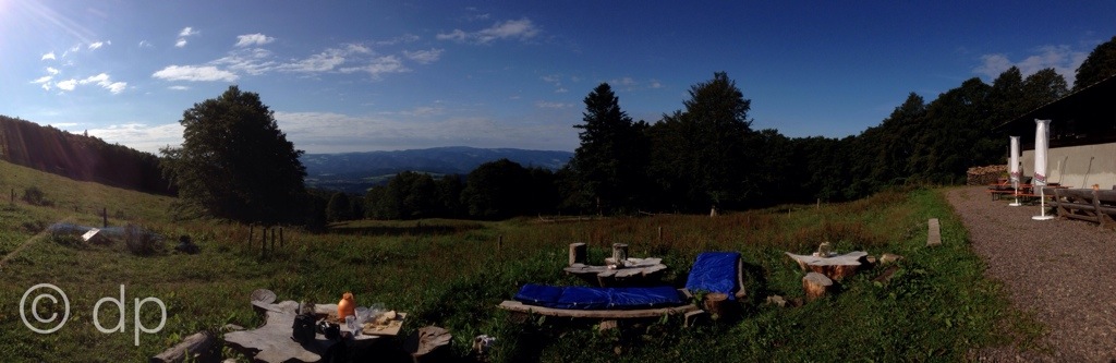 Un calme qui surtout la nuit est très impressionnant. Au matin les cloches des 88 vaches autour font fonction de réveil, petit-déjeuner avec vue sur le Feldberg, tisane fait maison avec les herbes qui se trouvent sur les champs devant la grange et un pesto à l’ail des ours et noix sur du pain frais, un vrai délice.